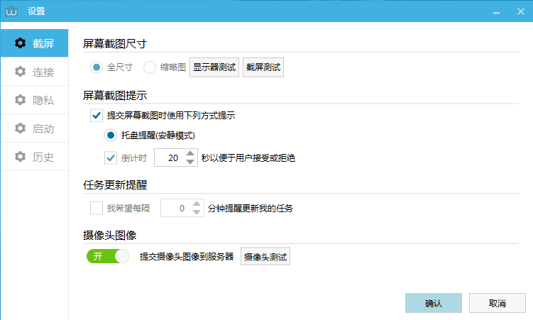 当工时通客户端截图并准备发送到服务器时,会弹出一个倒计时提醒。用户可以选择提交,放弃,或预览。